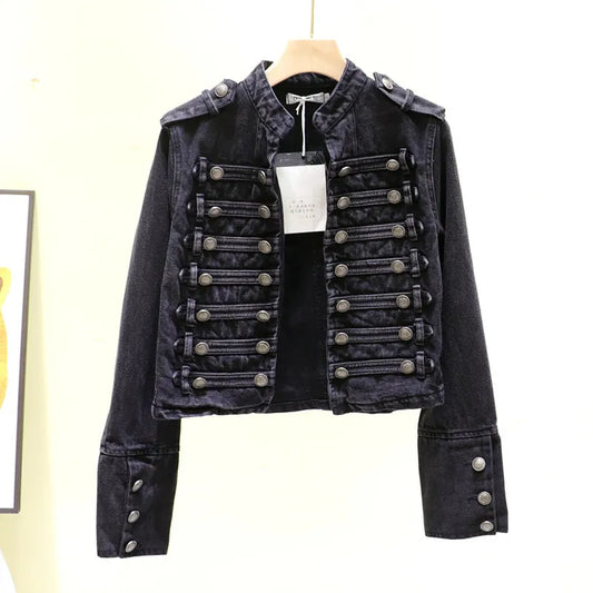 Retro Military Style Handsome Stand Collar Denim Jackets Female Double-breasted