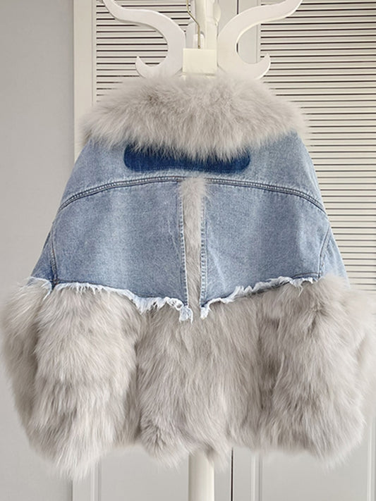 Women Winter Denim Jacket Oversize Large Fur Collar Plus