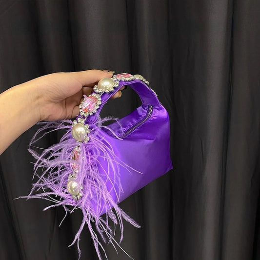 Luxury Ostrich Feathers Diamonds Evening Bags
