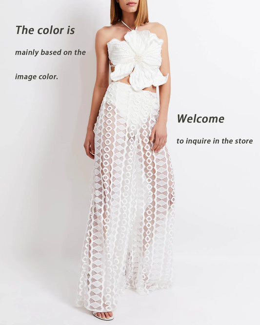 Sexy Sequin Mesh Skirts Two Piece Sets Womens Hollow Out Backless Crop Top&Skirt Suits New Party Club Mini Skirt Outfits