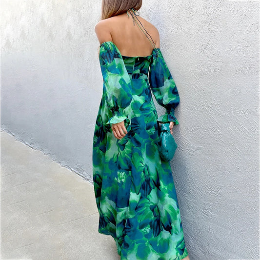Sexy Patchwork Off Shoulder Backless Split Dresses Chic Lady Beach Party Robes