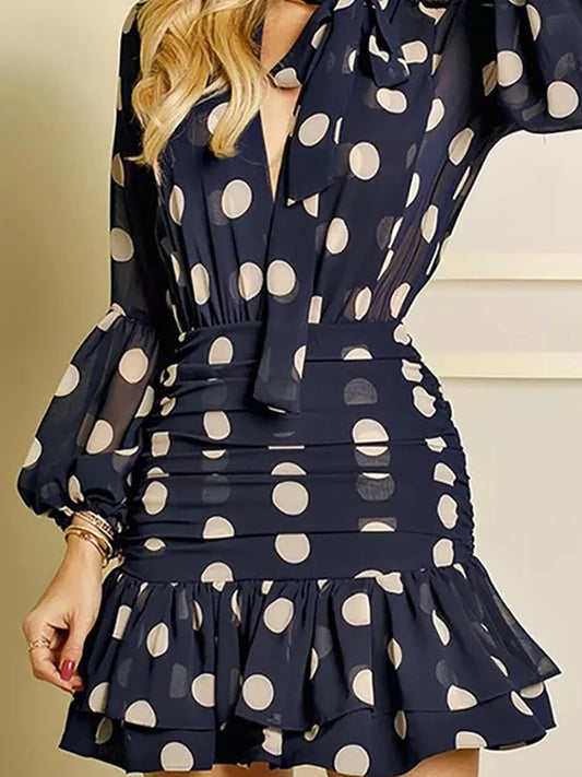 Vintage Mini Dress Women Fashion Lapel Slim Short Dress Elegant Office Lady Party Dress