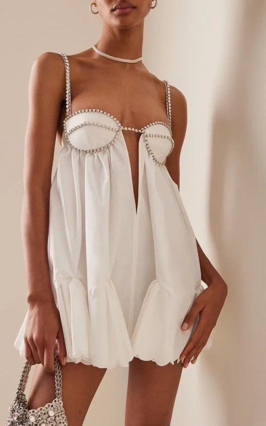 Diamante Sparkle White Little Dress New In Women Outfits Party Club Sexy Dress