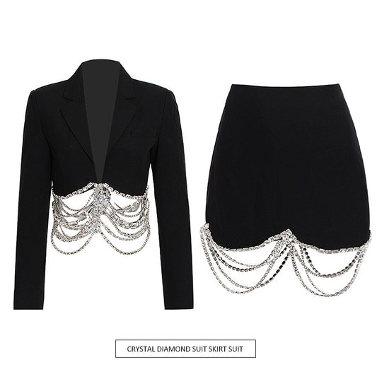 Sequined Long-sleeved Shirt Women's V-neck Vest Straight-leg Pants Three-piece Set